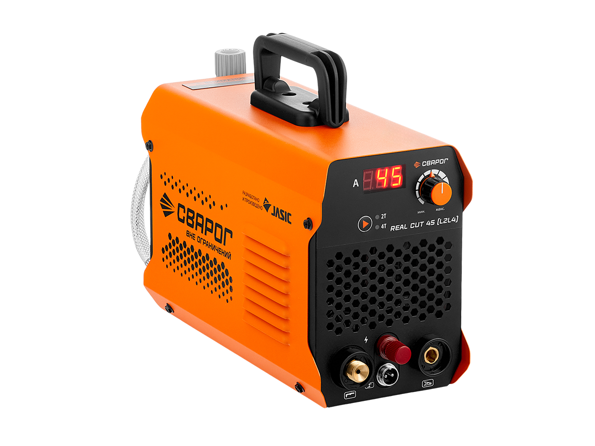 REAL CUT 45 (L2L4) — новая модель аппарата для воздушно-плазменной резки серии REAL, созданная для стабильной и точной работы при резке металла толщиной до 20 мм*. Теперь аппарат оснащён дежурной дугой, что позволяет резать окрашенные, ржавые и загрязнённые поверхности без предварительной зачистки. Аппарат обладает высокой производительностью, при этом остается компактным и легким, что делает его более удобным для повседневной работы.