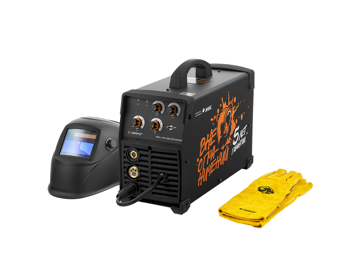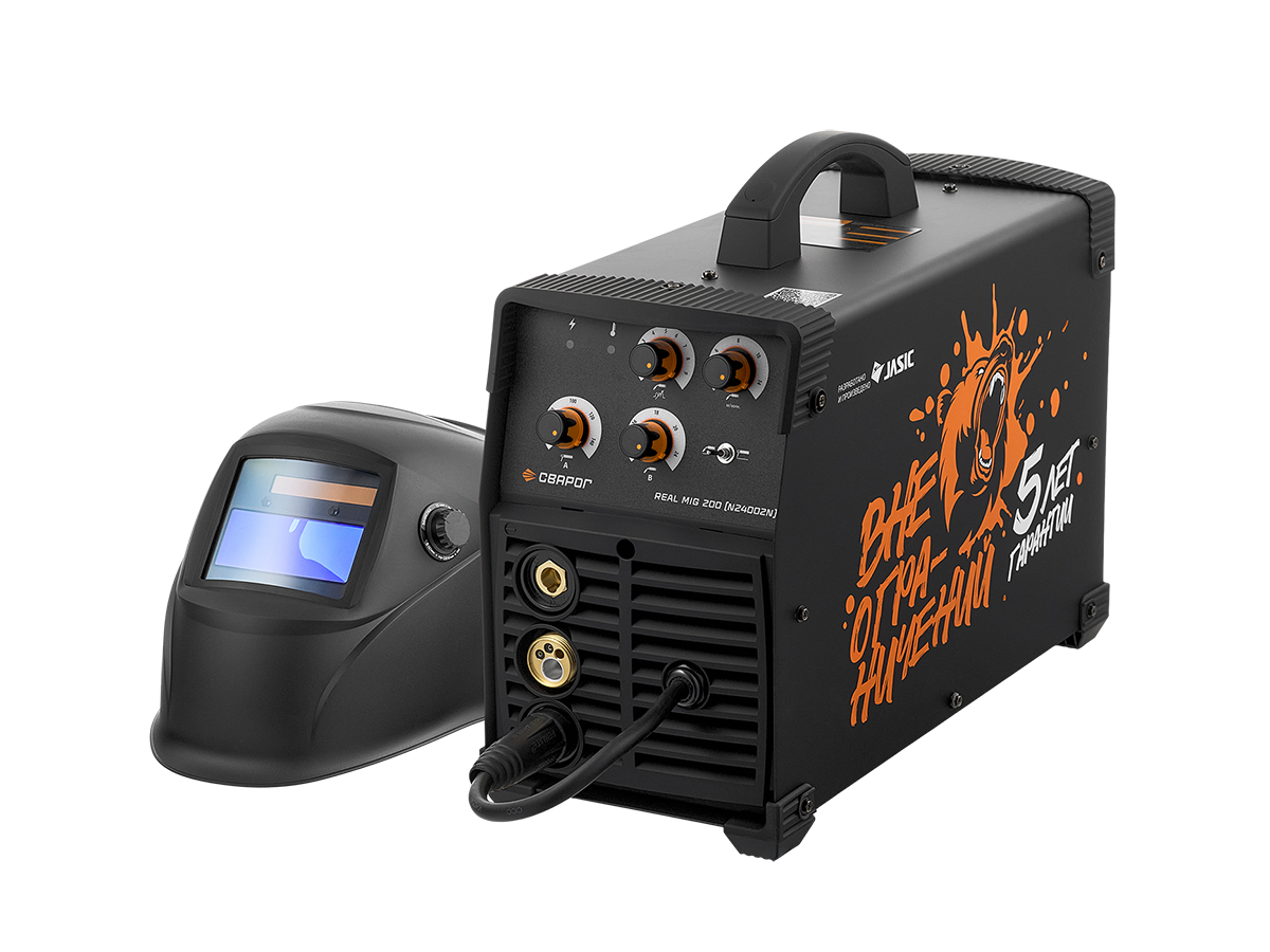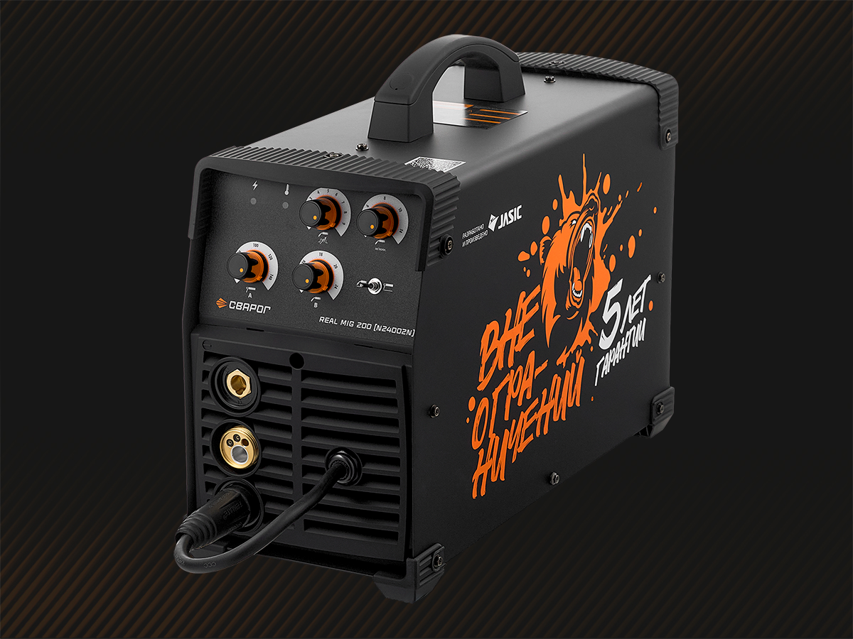 REAL MIG 200 BLACK (N24002N)— инверторный сварочный аппарат для полуавтоматической сварки в среде защитных газов (MIG/MAG), сварки порошковой проволокой (FCAW), а также ручной дуговой сварки покрытым электродом (ММА). Инвертор выпущен в уникальном дизайне и в ограниченном количестве. Отличается от стандартной модели REAL MIG 200 (N24002N) стильным дизайном, расширенной комплектацией.