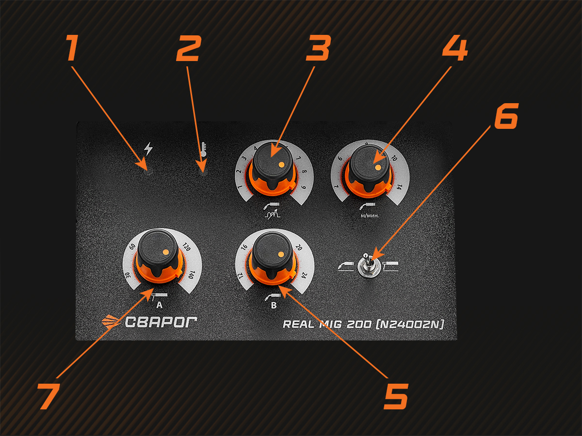 Аппарат REAL MIG 200 имеет классическую систему управления:
