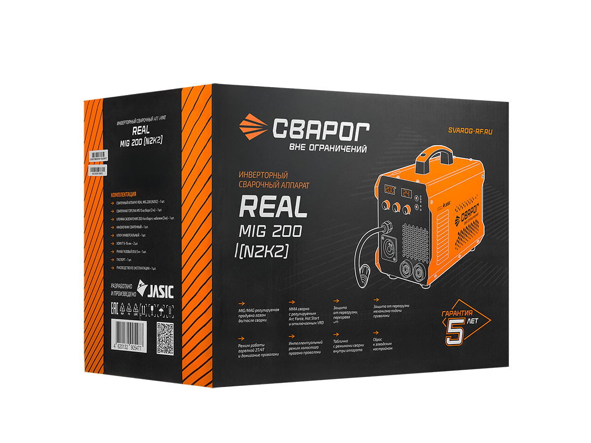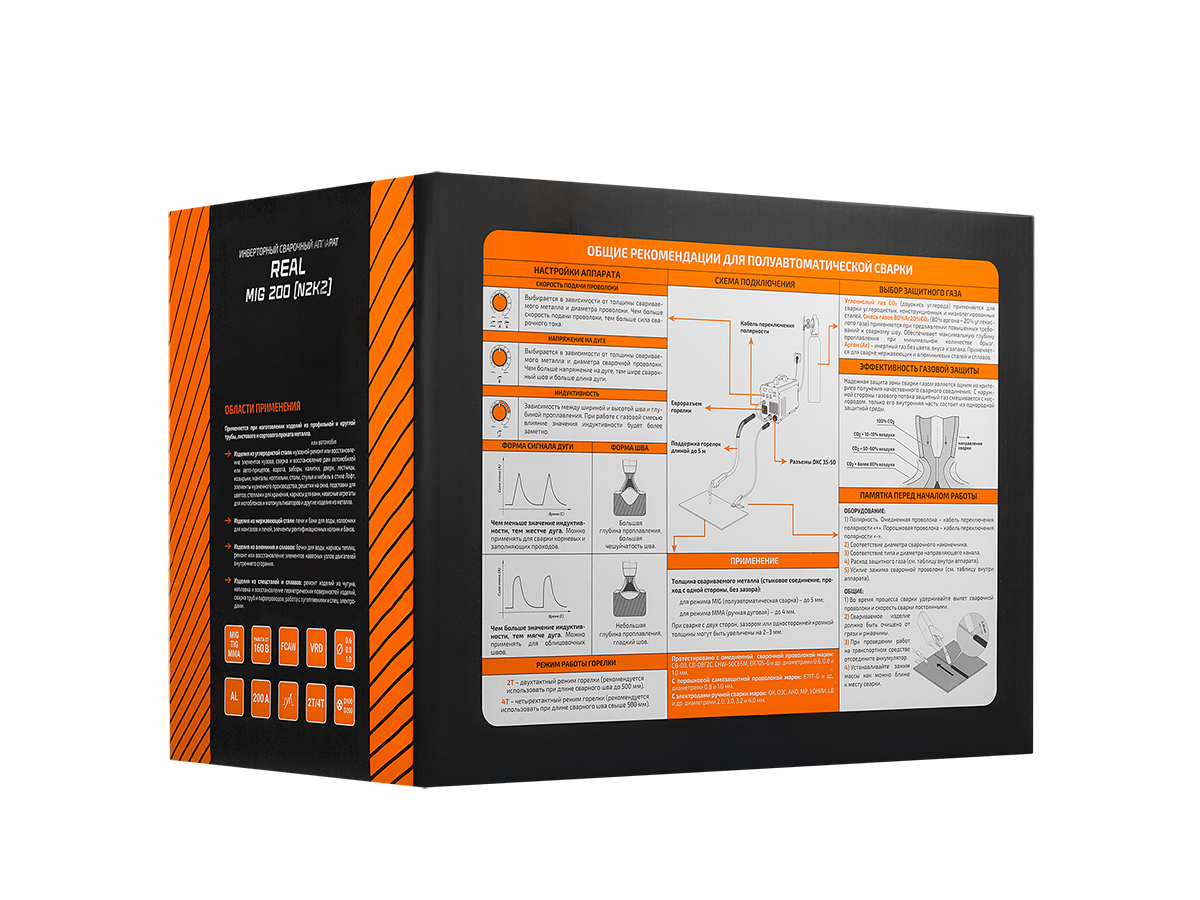 REAL MIG 200 (N2K2) — многофункциональный инверторный сварочный полуавтомат для полуавтоматической сварки в среде защитных газов (MIG/MAG), ручной дуговой сварки покрытыми электродами (MMA) и аргонодуговой сварки неплавящимся электродом (TIG Lift).