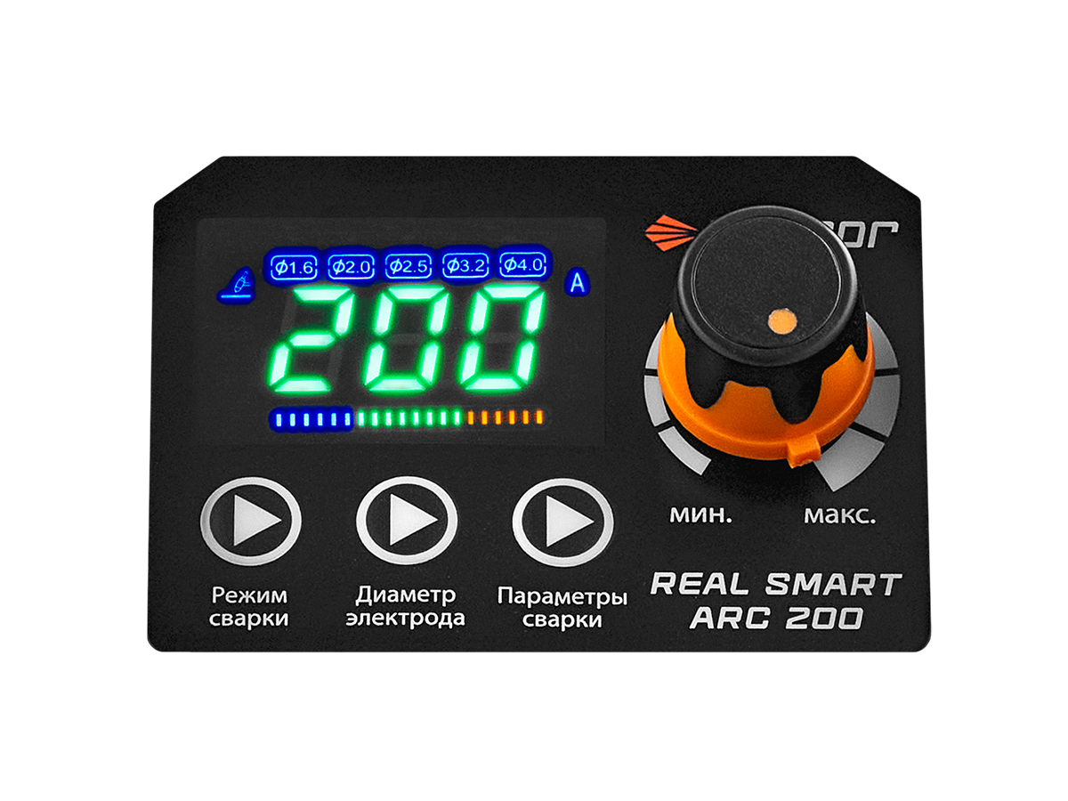 REAL SMART ARC 200 BLACK (Z28303)— инверторный сварочный аппарат для ручной дуговой сварки, наплавки покрытыми электродами и аргонодуговой сварки.