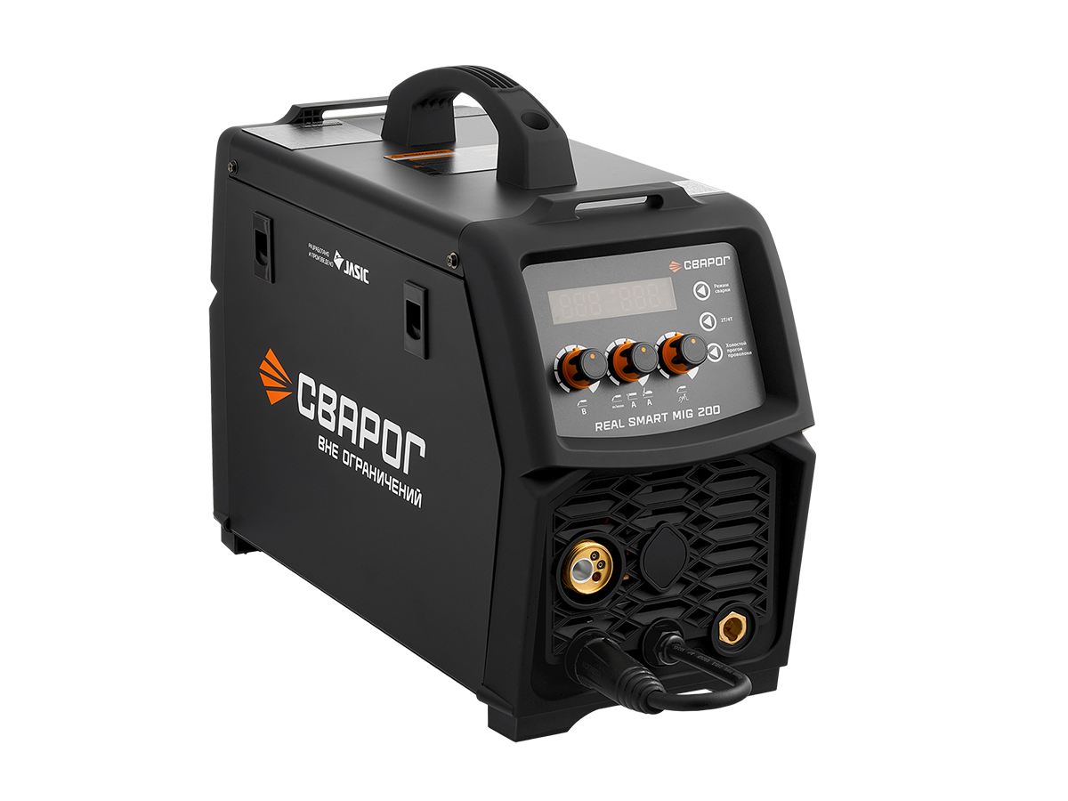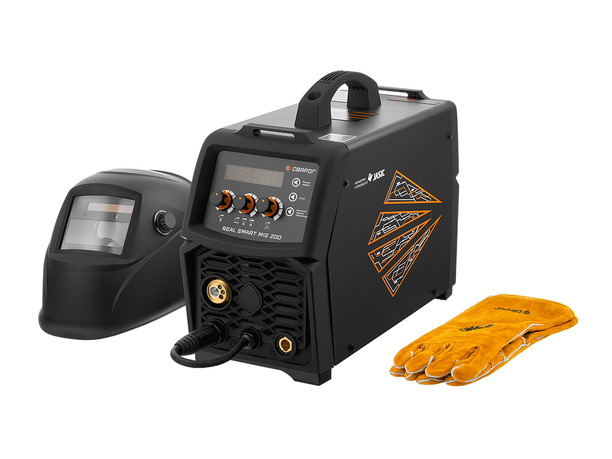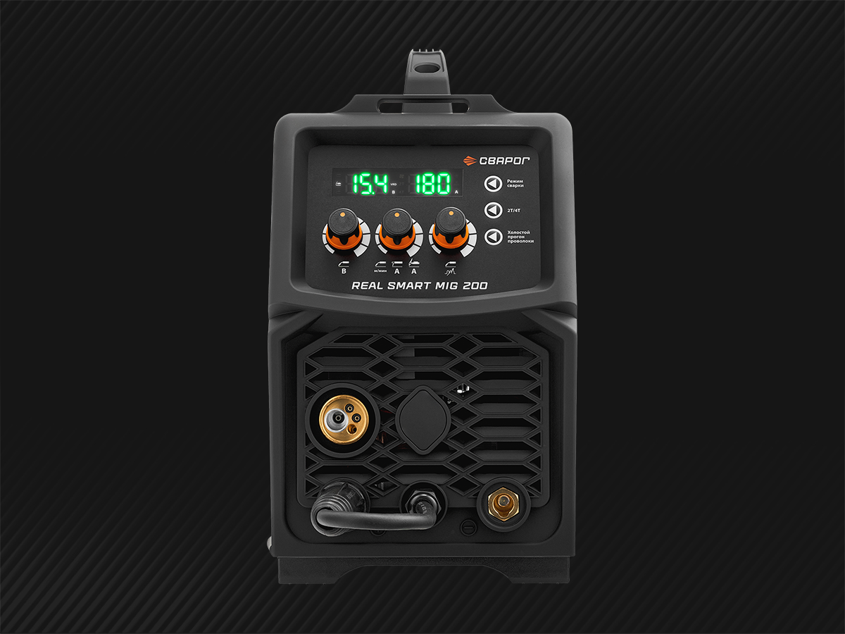 REAL SMART MIG 200 BLACK — универсальный, многофункциональный аппарат, предназначенный для полуавтоматической сварки сплошными и порошковыми проволоками (MIG/MAG), для ручной дуговой сварки покрытыми электродами (MMA), а также аргонодуговой сварки неплавящимся электродом (TIG). Все режимы являются полноценными и каждый содержит большой набор вспомогательных функций: